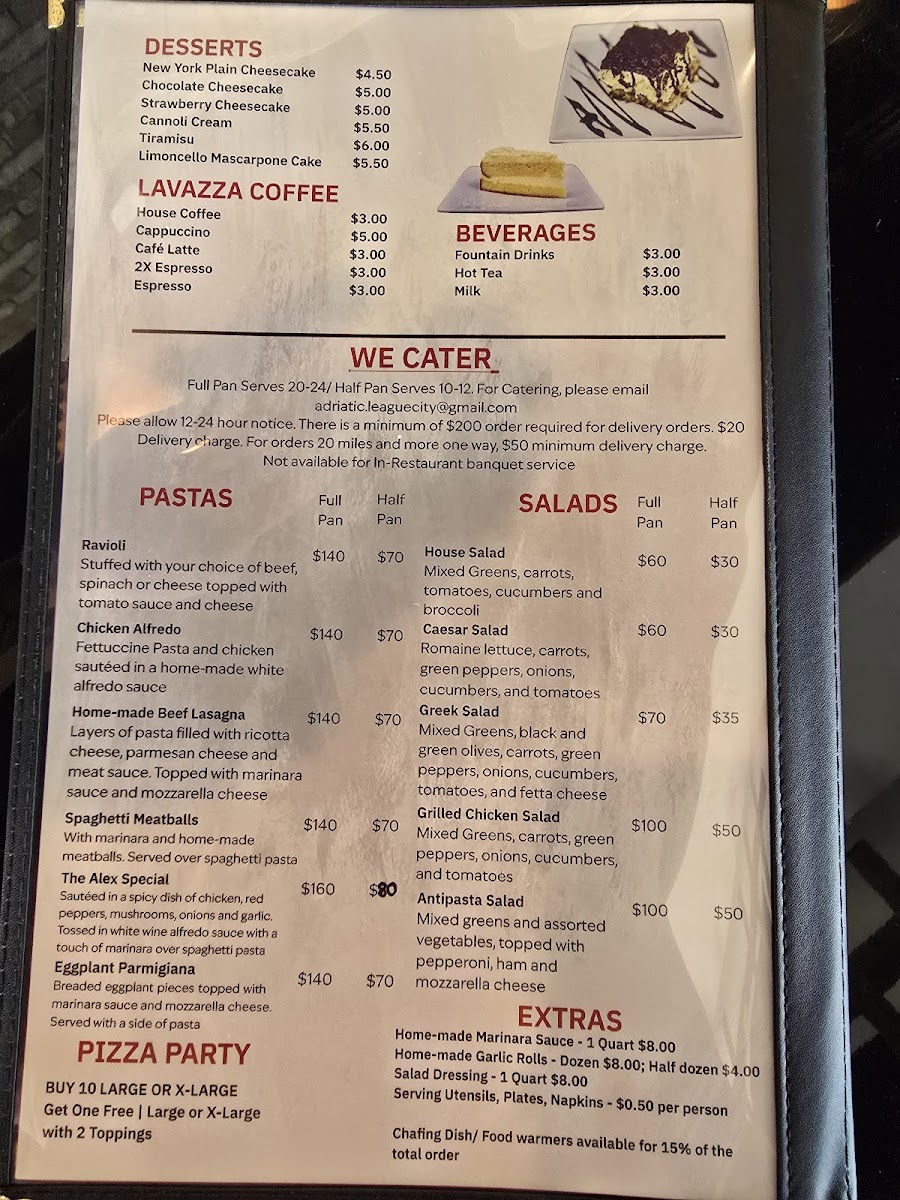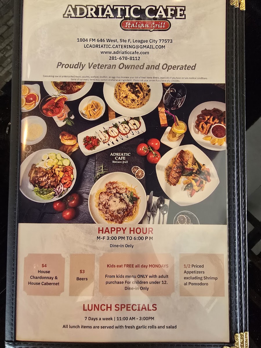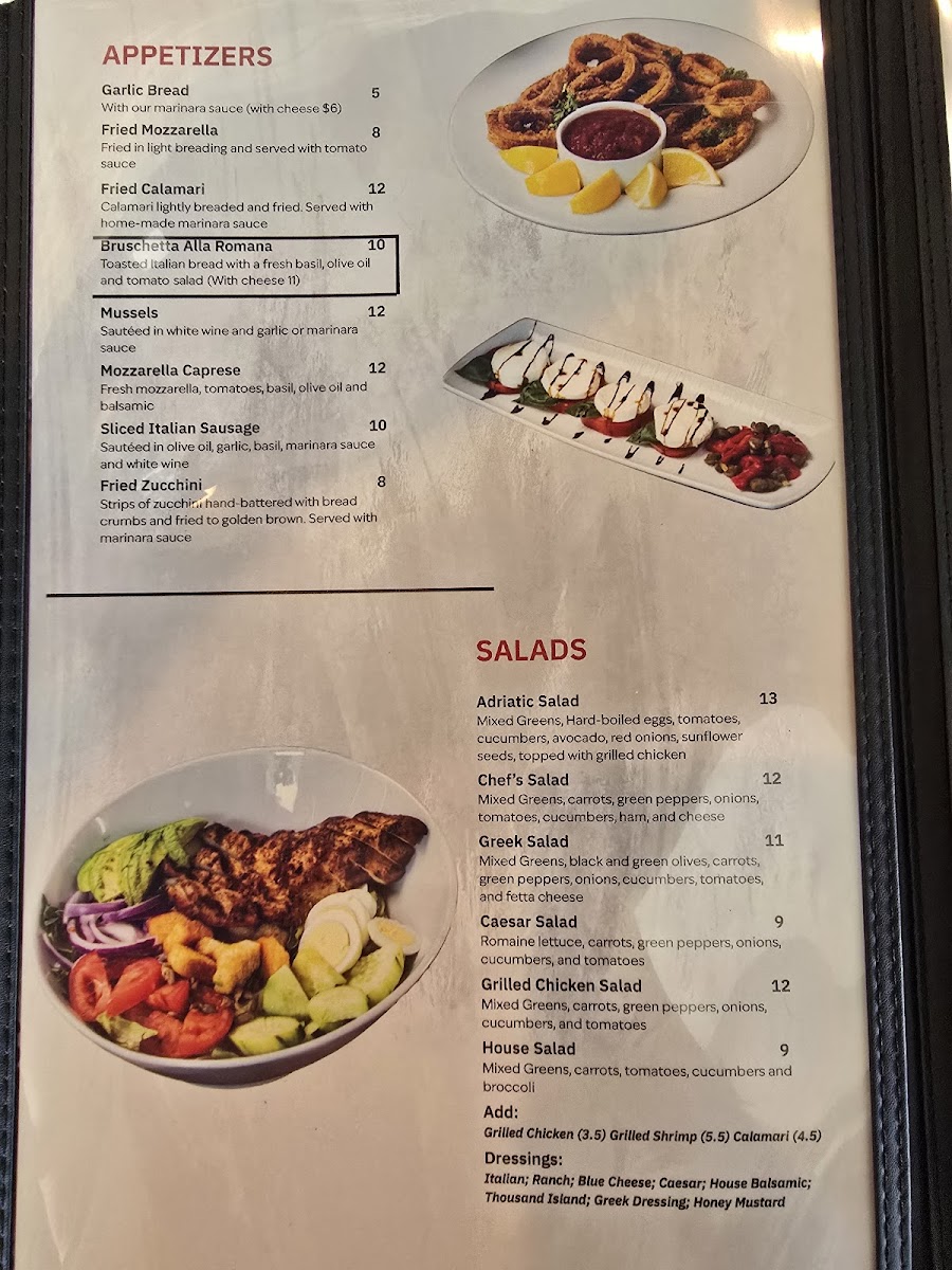Stepping into the cozy spot on FM 646 in League City, the first thing you notice is how the Adriatic Cafe Italian Grill Menu leans into comforting Italian classics without feeling predictable. As you look through it, you’ll find familiar dishes, but each one feels a little more inviting - like pasta plates that come out steaming and rich, or pizzas with that perfect balance of crisp and chewy. And while the entrées get plenty of attention, the smaller bites are just as tempting, especially if you like easing into a meal with something warm and shareable.